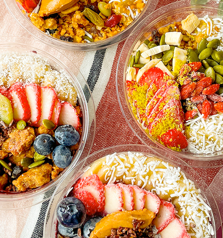沖縄発の濃厚なアサイーを使用した人気の冷凍アサイーボウル。白砂糖不使用で、贅沢な8種類のトッピングを楽しめます。